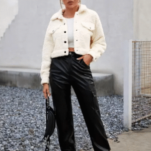 White Casual Long Sleeve Shearling Plain Teddy Non-Stretch Winter Women Outerwear