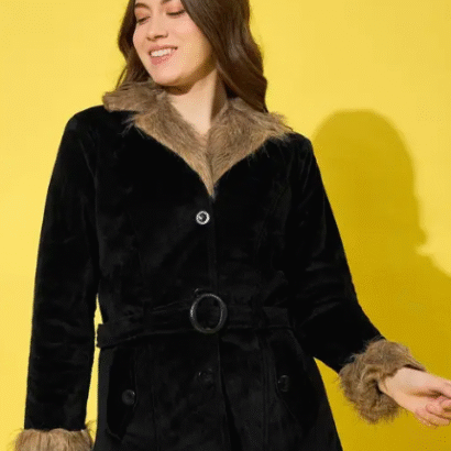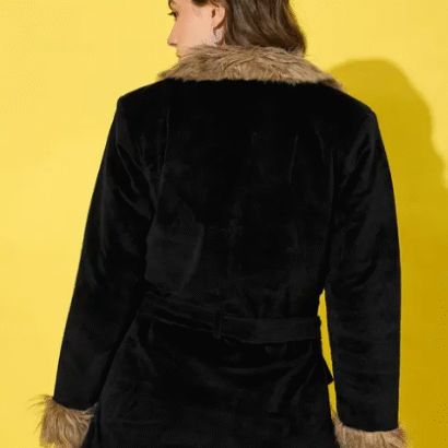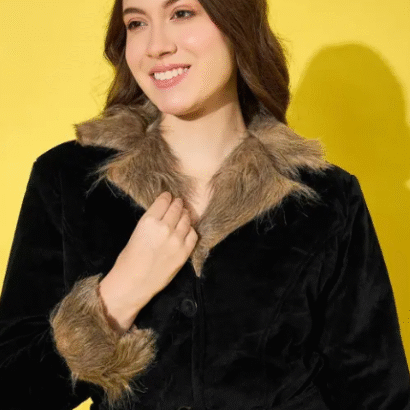 Be the first to review “Buynewtrend Black Velvet Winter Coat Women Jacket With Soft Fur”