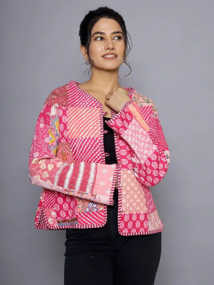 The Women’s Quilted Crop Jacket Reversible Patchwork Cotton Coat is a stylish and versatile addition to any wardrobe. Featuring a reversible design, it offers two unique looks in one, making it perfect for creating diverse outfits. The quilted texture provides warmth and comfort, while the cropped fit adds a modern, flattering touch. Crafted from breathable cotton, it’s both lightweight and sustainable, making it ideal for year-round wear. The patchwork pattern lends a bohemian charm, effortlessly elevating casual ensembles. Whether paired with high-waisted jeans or layered over a dress, this jacket is a statement piece that combines practicality with trend-forward design.